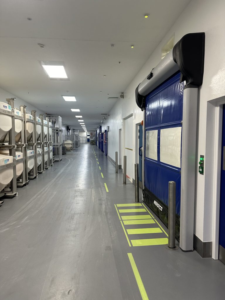 A pharmaceutical manufacturing facility in Beeston required clear, highly visible pedestrian walkways and zebra crossings within active forklift and logistics zones. Traditional painted markings were prone to wear, requiring regular maintenance and disruption to operations.